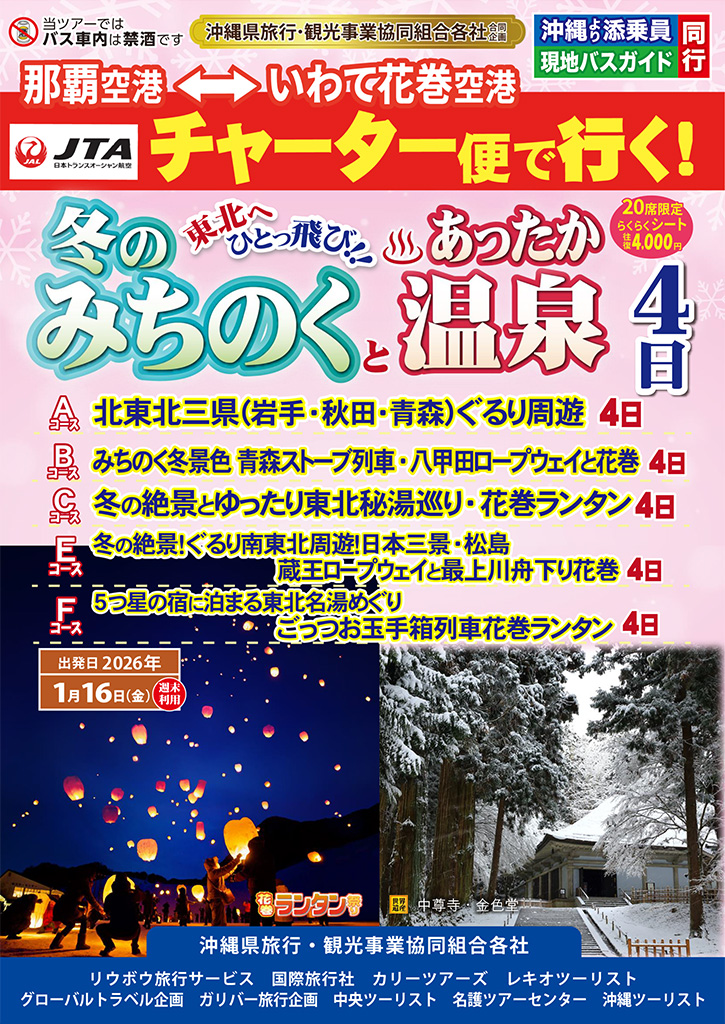 JTAチャーター便で行く!冬のみちのくとあったか温泉4日